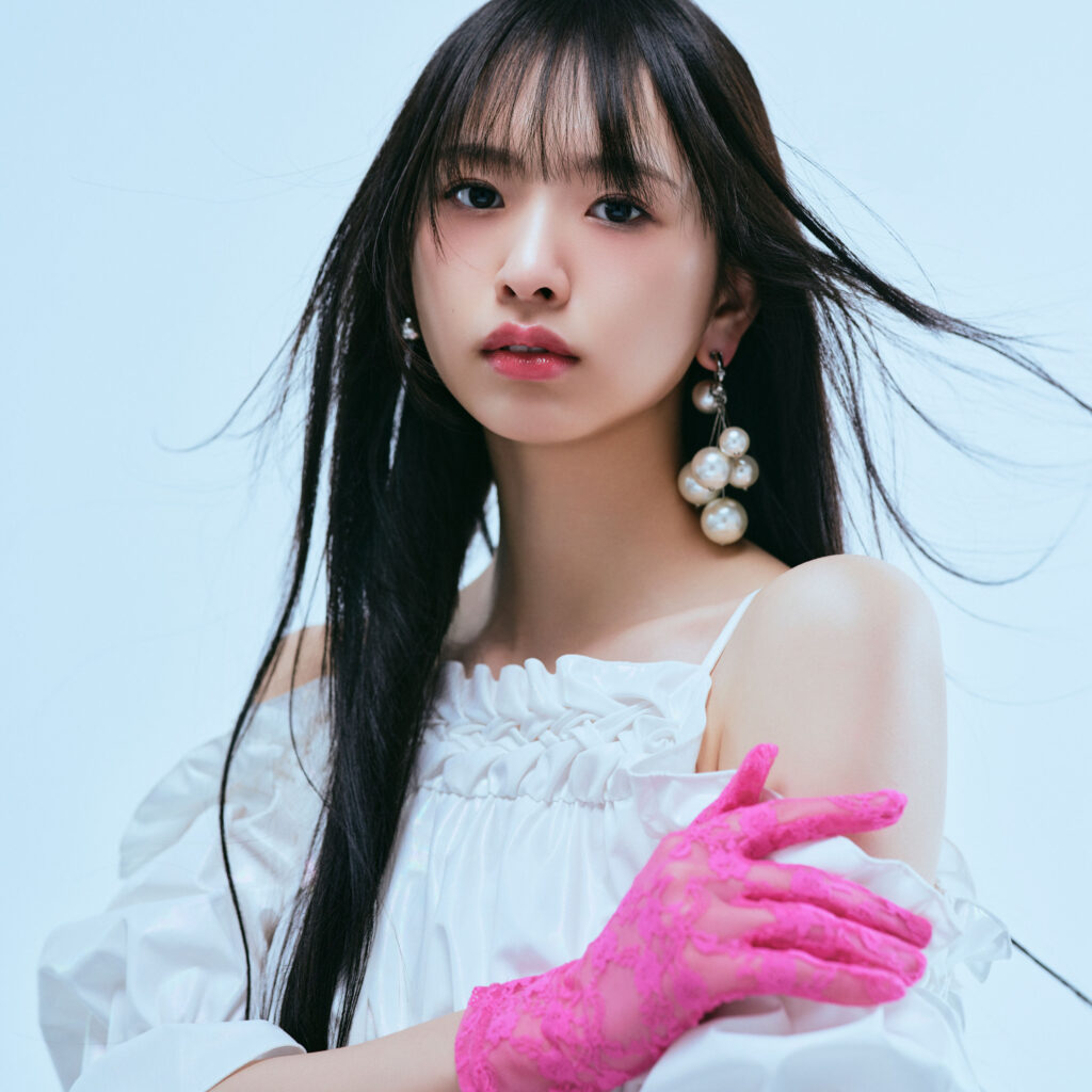 白のドレスに映える鮮烈なピンクのアクセントを軸に、透明感の中に存在感を際立たせるスタイリングで、三品さんの新たな表情を引き出しています。