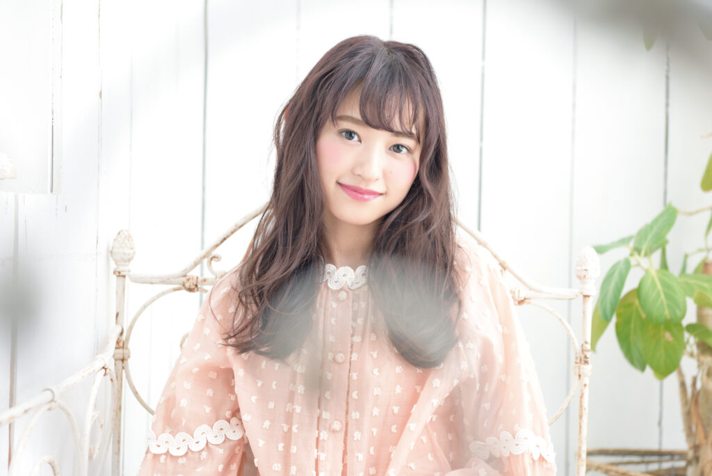 ふんわりと風に舞うようなヘアと、血色感をまとったナチュラルメイクが織りなすのは“愛らしさと清楚さの両立”。少女らしい無垢さに、大人の女性らしい落ち着きがほんのりと加わり、見る人の心を優しく惹きつけます。