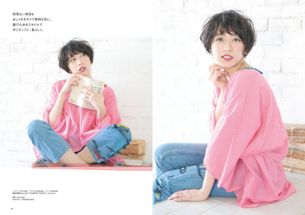 軽やかに揺れるショートヘアと、フレッシュなピンクリップが生み出す、春風のような女性像。シンプルでありながら、細部に宿るこだわりが感じられるスタイルは、デイリーにもフォーマルにもフィットする万能な魅力を放ちます。